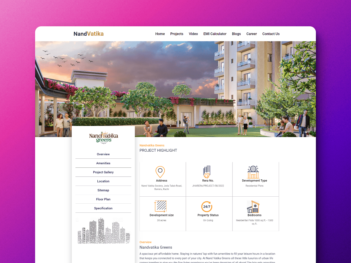 I created this Website for NandVatika and they are Real Estate company that helps people to find there dream house in Ranchi.
